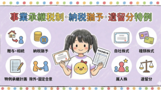 概要中小企業の事業承継において、自社株式にかかる贈与税・相続税の負担は大きな課題です。この記事では、その負担を大幅に軽減する「法人版事業承継税制(納税猶予・免除制度)」と、自社株式の分散リスクを防ぐ「遺留分に関する民法の特例」について解説し...