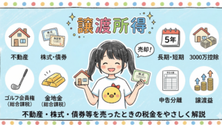 1. 概要譲渡所得とは、土地・建物・株式・ゴルフ会員権などの資産を譲渡(売却)することによって生じる所得です。譲渡する資産の種類によって課税方法(総合課税・申告分離課税)が異なり、さらに所有期間によって長期・短期に区分されます。CFP試験で...
