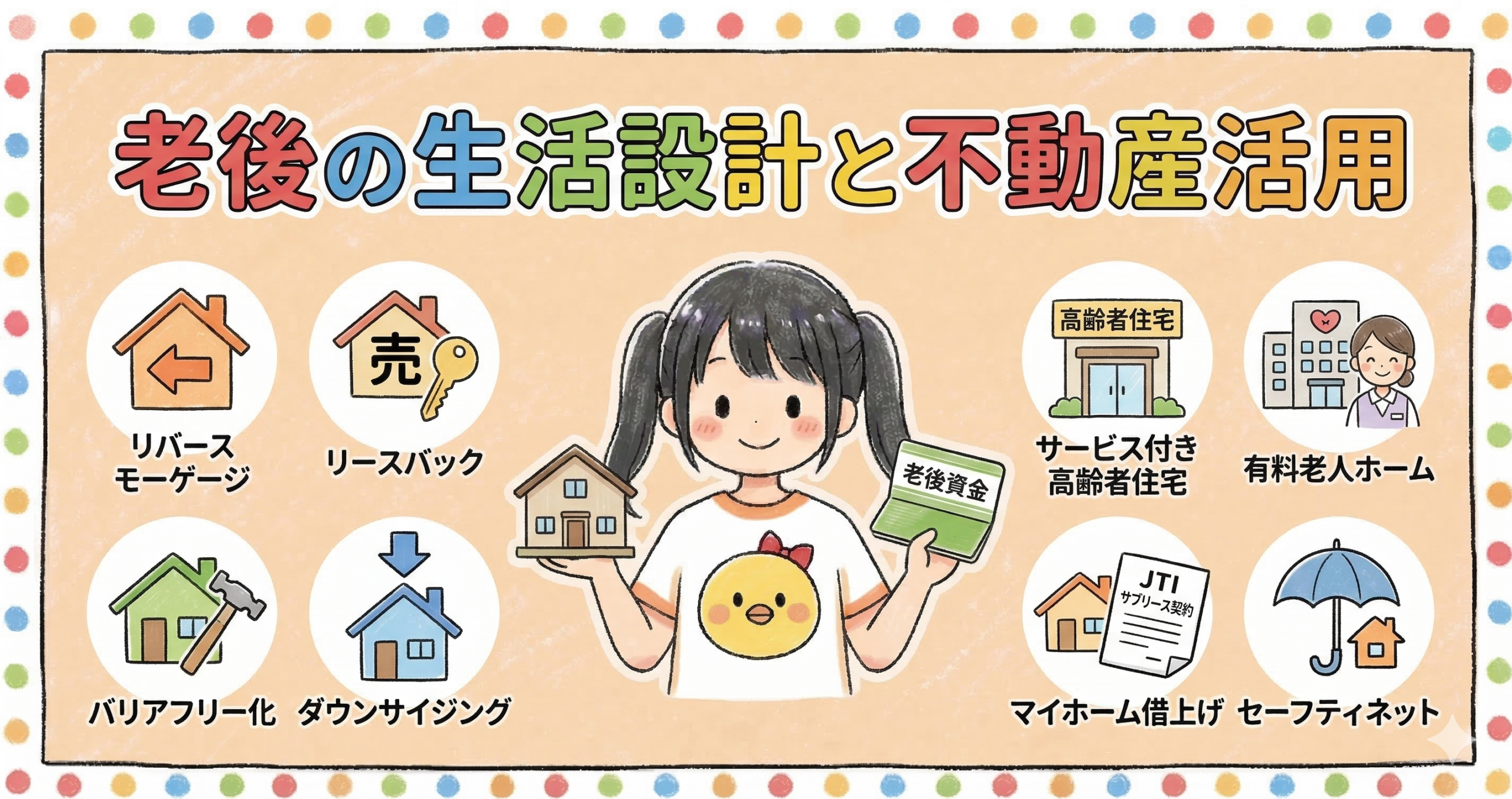 人生100年時代を迎え、老後の住まいと資金の計画は生活設計の根幹となっています。不動産はほとんどの人にとって最大の資産であり、それをどう活用するかが老後の生活の質を大きく左右します。本記事では、老後の住まいの選択肢(持ち家継続・住み替え・施設入居等)、自宅を活用した資金調達(リバースモーゲージ・リースバック等)、高齢者向け住宅の種類について体系的に整理します。CFP試験では高齢者向け住宅の種類・特徴・法的根拠が頻出です。